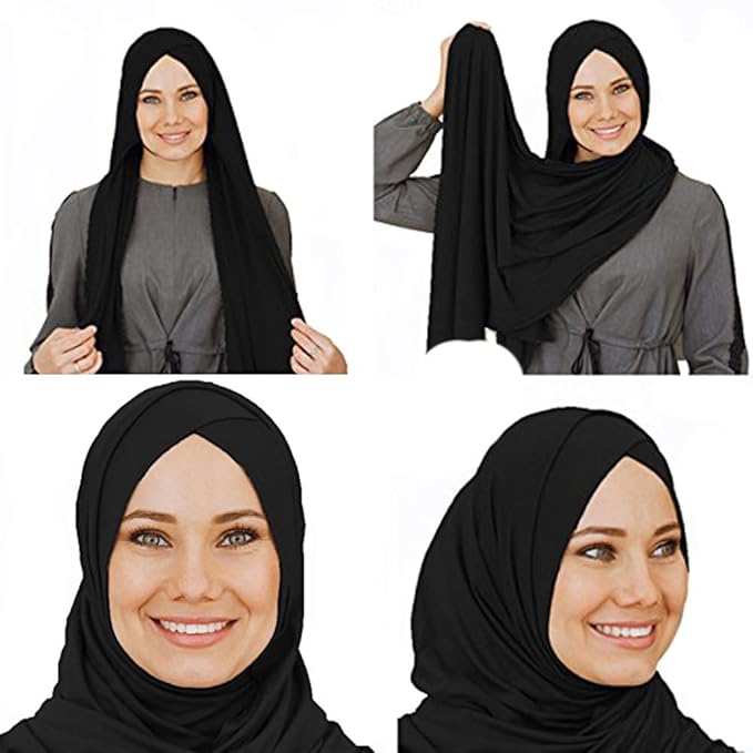 Cotton Head Scarf Instant Black Hijab Ready To Wear Muslim Accessories For Women