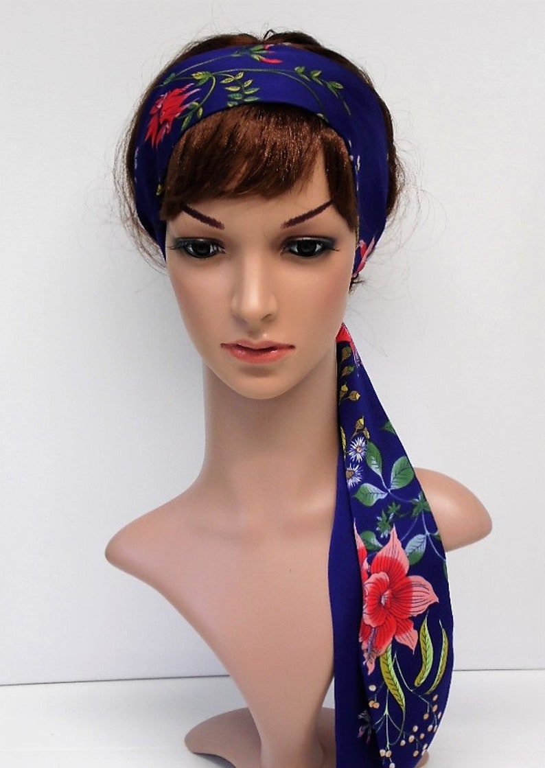 Blue Headband Self Tie Headscarf Satin Hair Tie Silky Head Scarf Long Headband Retro Style Hair Scarf Hair Wrap Satin Headscarf