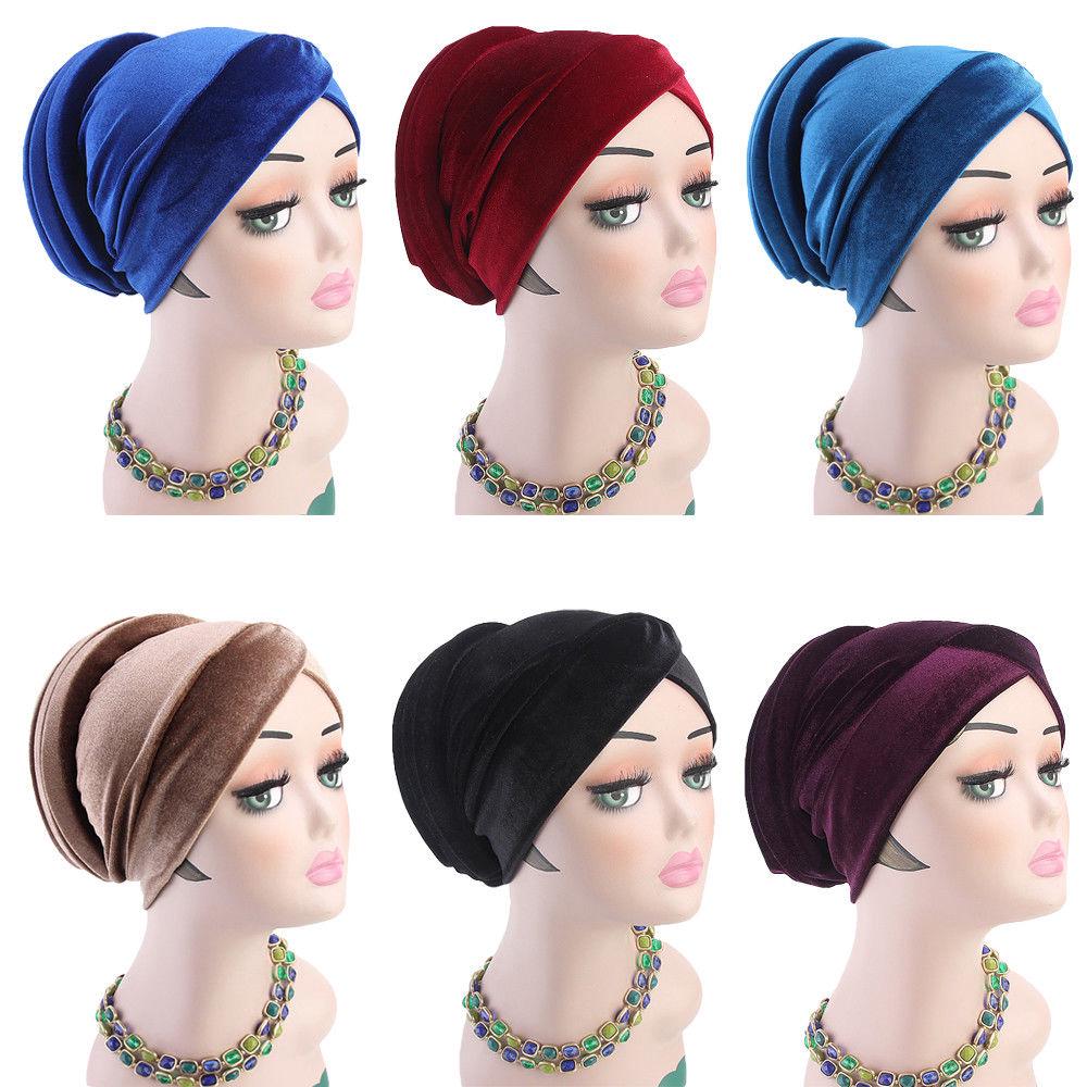 Arab Women Velvet Beanie Chemo Cap Muslim Headscarf Wrap Turban Hat