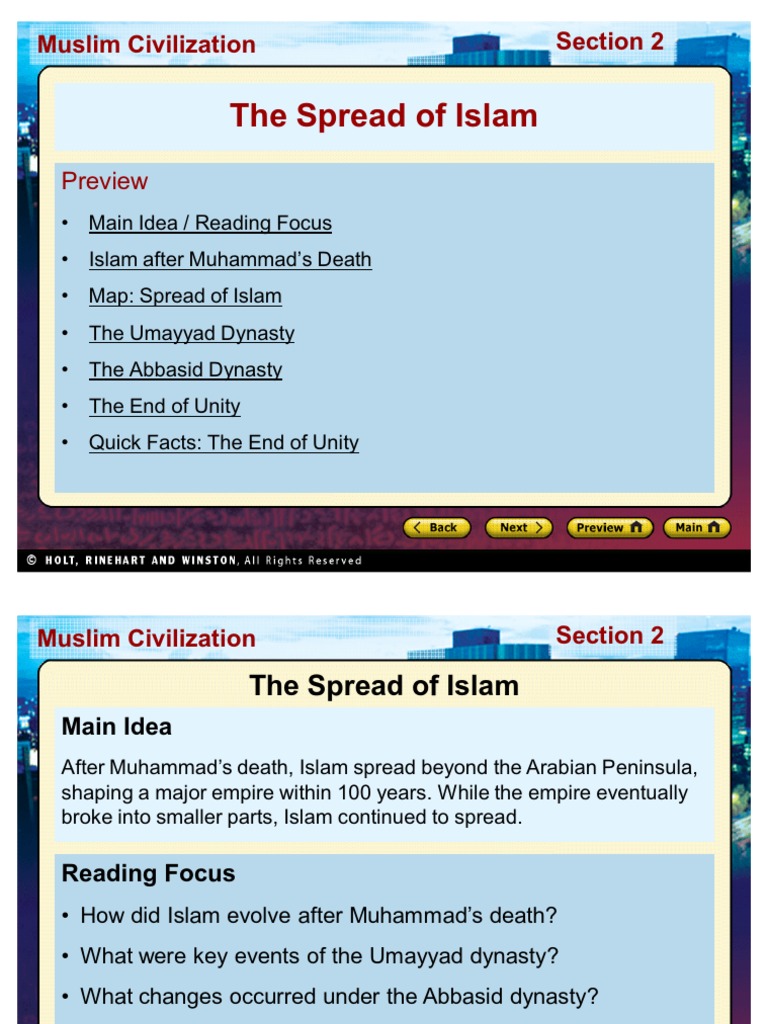 Chapter 9 The Islamic World Section 2 The Spread Of Islam Ppt