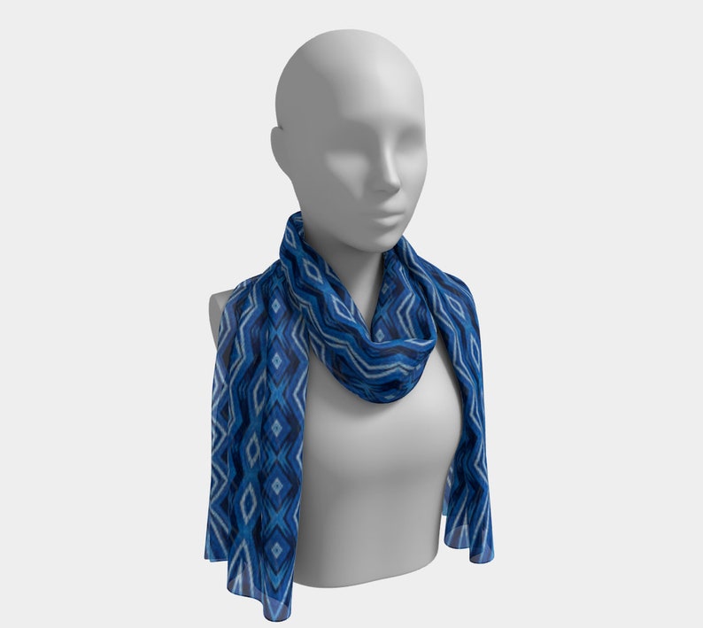 Azure Eyes Long Scarf Shawl Wrap Hijab African Look Tribal Print Navy White Head Scarf Neck Scarf Bow Tie